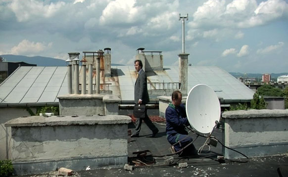A middle-aged man, unsatisfied with his life, is about to commit a suicide from a roof top. The only thing standing in his way is a simple handyman.